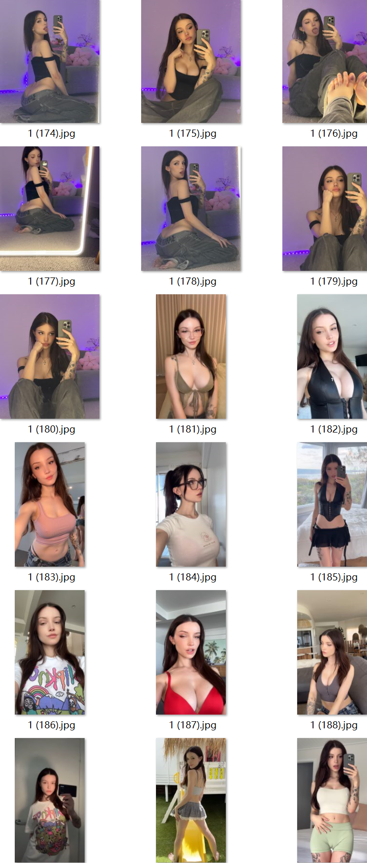 | 属*:同人私密 欧美高颜值美女 照片包括日常自拍、*感擦边、*度诱惑、局部自拍特写。视频有日常自拍、擦边、*度诱惑,视频比较真实。有多个自拍打招呼后自娱自乐的视频,自娱自乐最长时间9分钟,适合虚拟视频! | |||