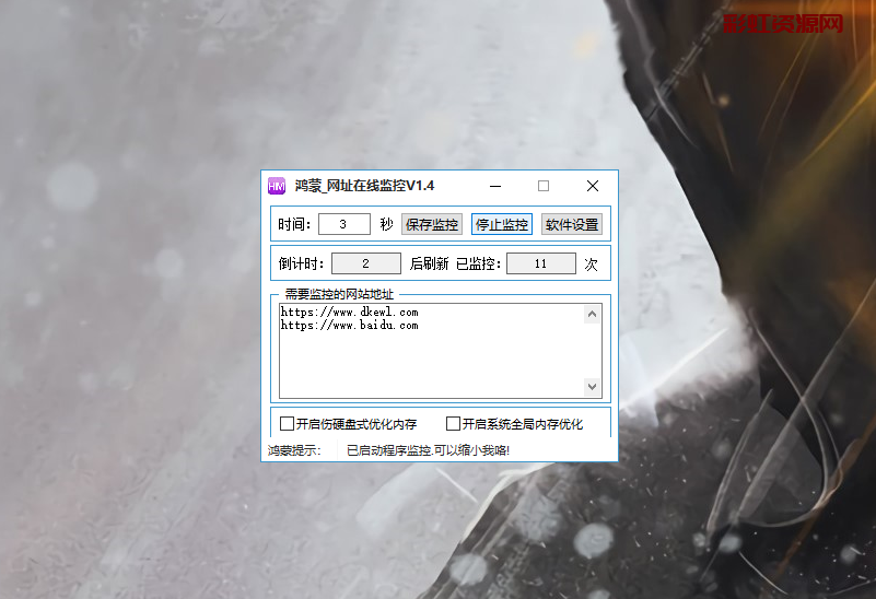 鸿蒙多网址批量本地挂机监控(网址监控程序)是一款免费的本地监控工具,这款软件支持多线程多网址批量监控