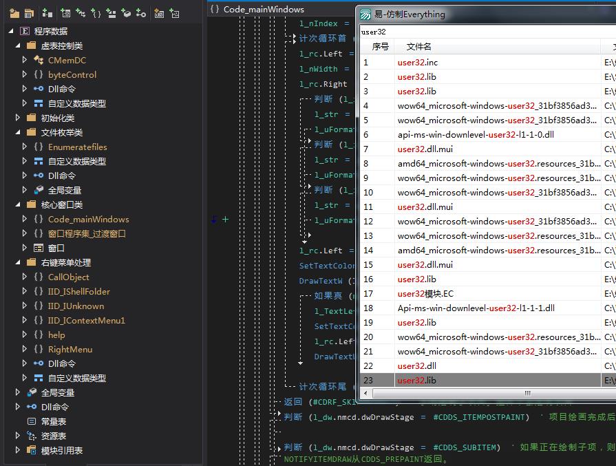 - 本程序内部核心基于帖子:纯源码。仿制Everything内核,超高效硬盘枚举